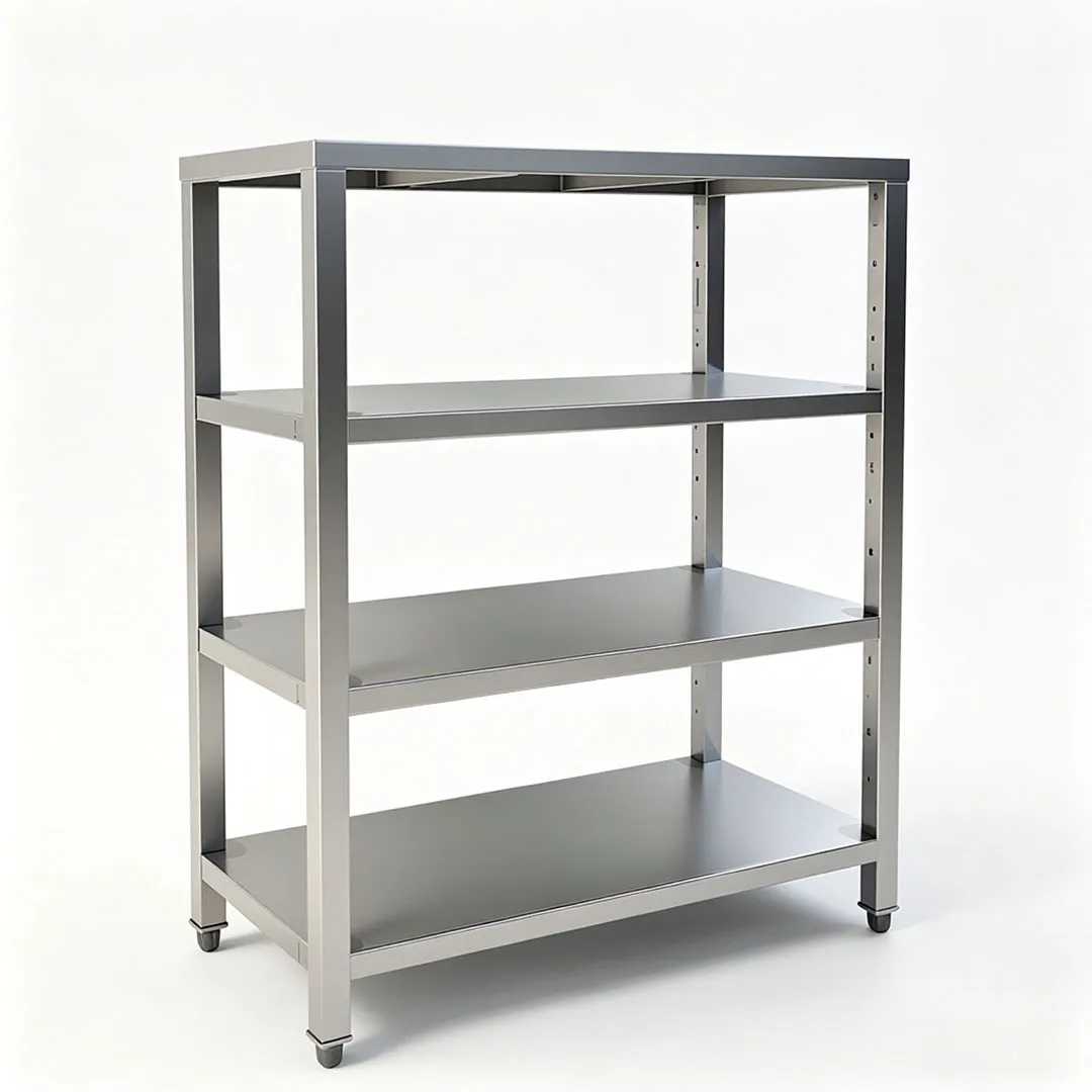 2. Food-Grade Stainless Steel Build: Constructed from 304 food-grade stainless steel, the shelf rack complies with commercial kitchen hygiene regulations, resisting food residue adhesion and simplifying sanitization to meet health inspection standards.